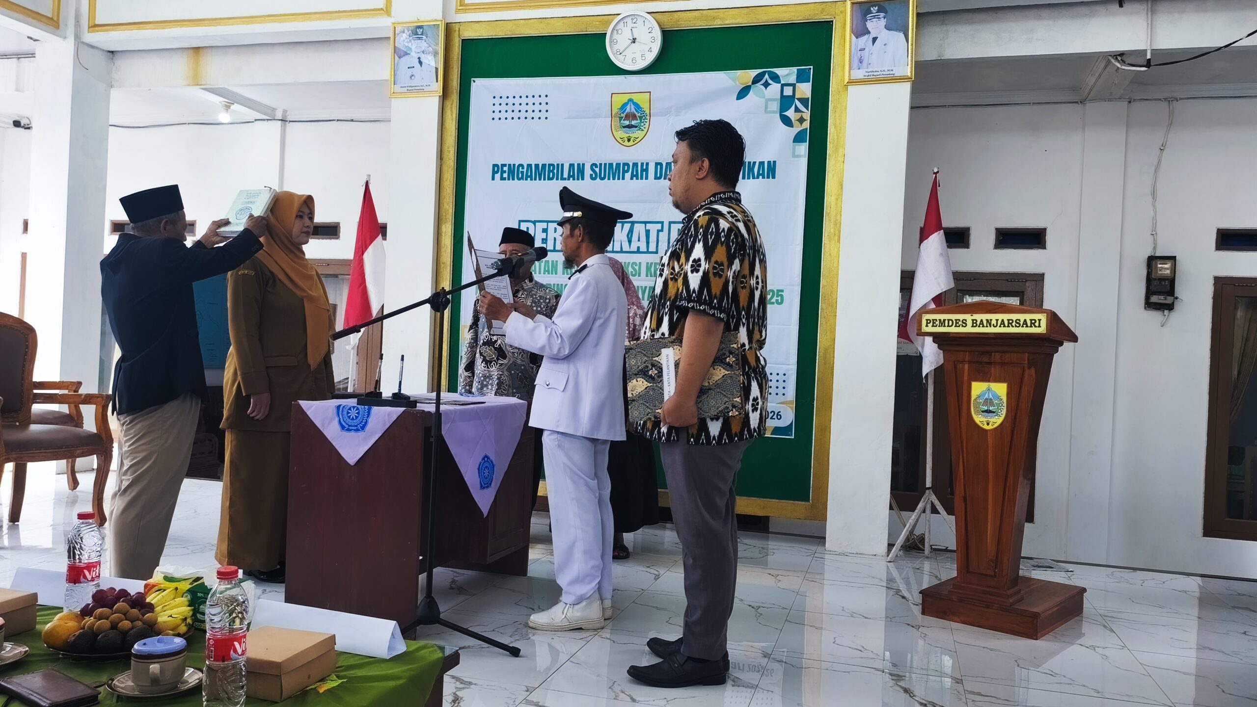 Kembangmekarnews.com | Pemalang – Pemerintah Desa Banjarsari, Kecamatan Bantarbolang, Kabupaten Pemalang, menggelar upacara Pengambilan Sumpah dan Pelantikan Perangkat Desa untuk formasi jabatan Kepala Seksi (Kasi) Kesejahteraan pada Kamis (29/1/2026). Acara yang berlangsung khidmat di Aula Balai Desa Banjarsari ini merupakan hasil akhir dari proses penjaringan dan penyaringan perangkat desa tahun 2025.