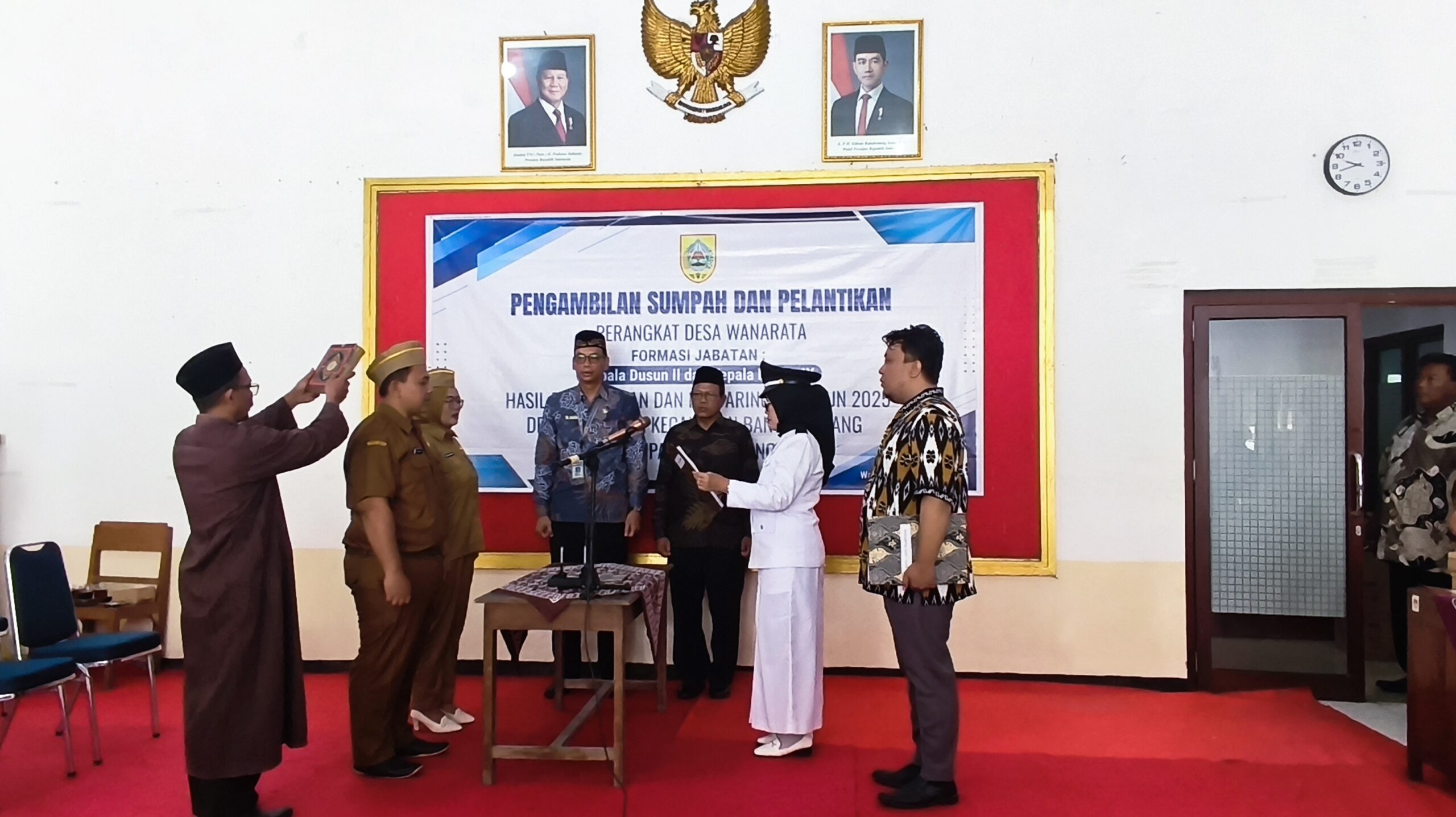 Beliau juga mengajak seluruh warga Desa Wanarata untuk memberikan dukungan penuh kepada perangkat yang baru dilantik agar mereka dapat bekerja maksimal dalam memajukan desa.