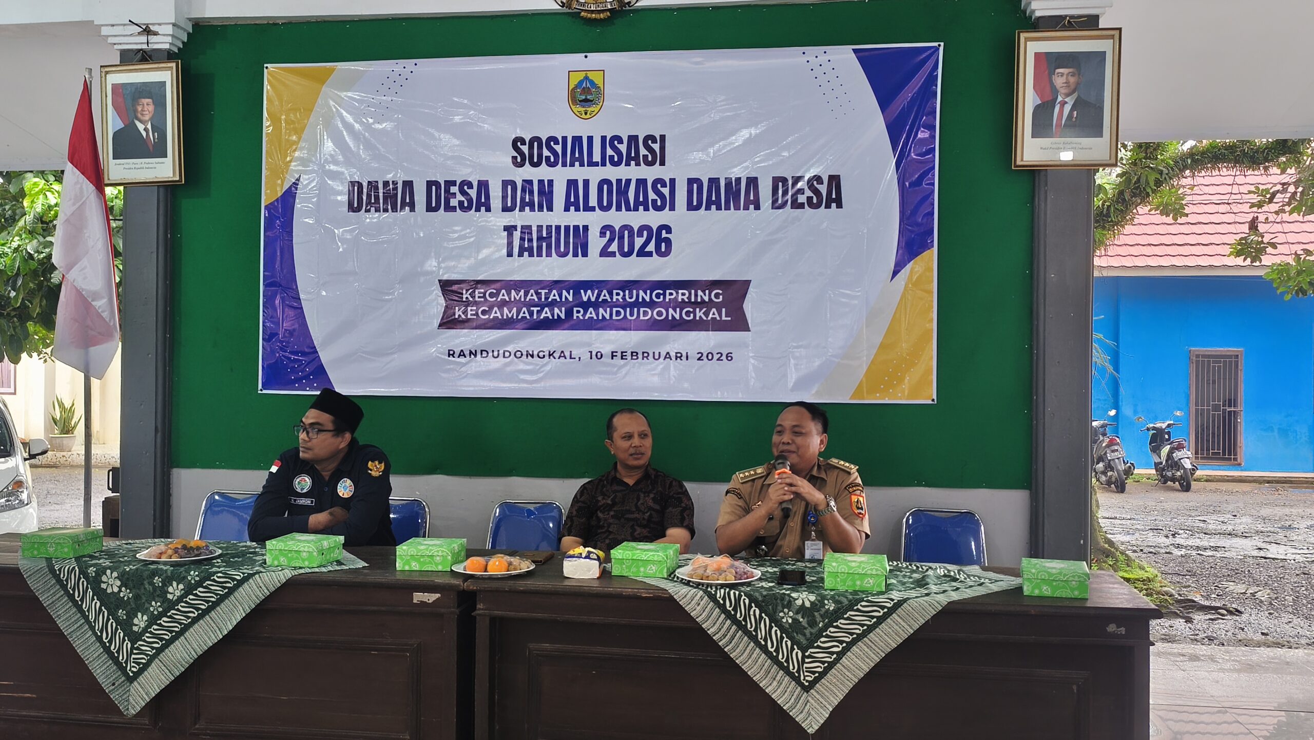 Kembangmekarnews.com | Pemalang – Pemerintah Kabupaten Pemalang melalui Dinas Pemberdayaan Masyarakat dan Desa (Dinpermades) menggelar kegiatan Sosialisasi Dana Desa (DD) dan Alokasi Dana Desa (ADD) Tahun Anggaran 2026 bagi Kecamatan Randudongkal dan Kecamatan Warungpring. Kegiatan tersebut dilaksanakan pada Selasa, 10 Februari 2026, bertempat di Pendopo Kecamatan Randudongkal.